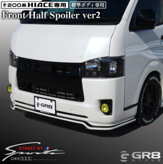 フロントスポイラーは、ハイエースの見た目を引き締めるだけでなく、走行安定性の向上にも寄与する人気のカスタムパーツです。