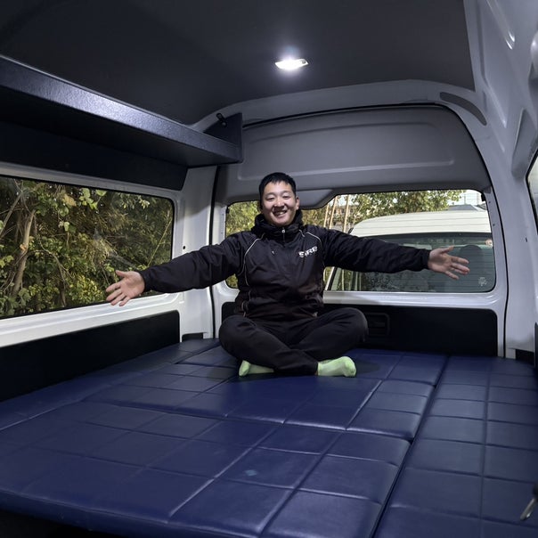 リアシートとベットの間も十分な広さがあるので着替えなども楽に出来そうですグラサン