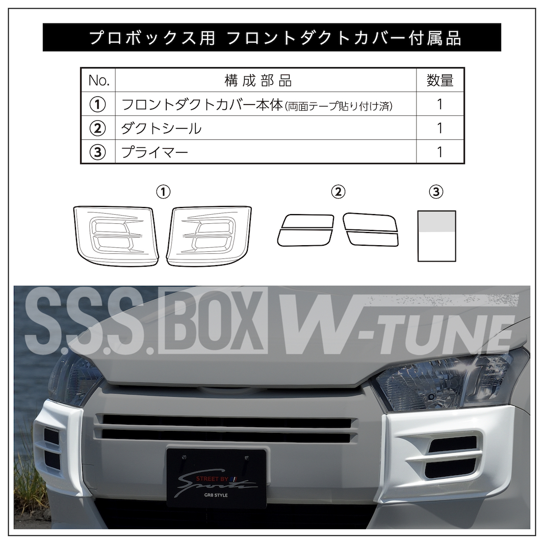 GR8 プロボックス専用のパーツシリーズ《S.S.S BOX W-TUNE》からフロントダクトカバーが登場。
