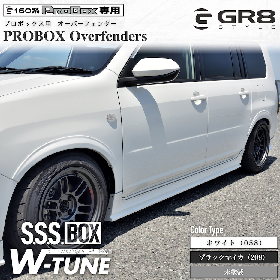 GR8 プロボックス専用のパーツシリーズ《S.S.S BOX W-TUNE》からオーバーフェンダーが登場。