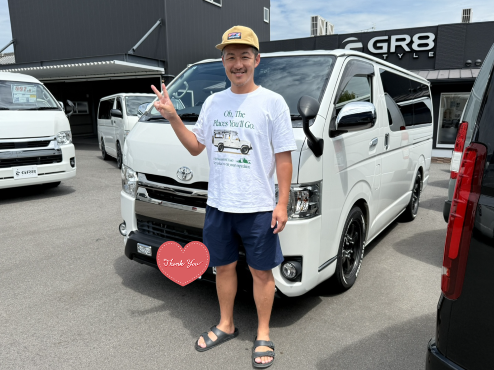 大府店 N様 ハイエースバン ご納車! 2025-08-13 大府店ご納車情報 愛知県お住まいのN様 ハイエースバン スーパーGL ダークプライム ご納車おめでとうございます 素敵なバンライフをお楽しみ下さい この度はGR8大府店にお越し頂き、 お車をお選び頂きまして誠にありがとうございます