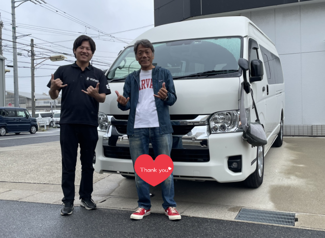 春日井店 M様 ハイエースバン ご納車! 2025-10-11 春日井店ご納車情報 神奈川県お住まいのM様 ハイエースバン DX ご納車おめでとうございます 素敵なバンライフをお楽しみ下さい この度は県外からGR8春日井店にお越し頂き、 お車をお選び頂きまして誠にありがとうございます